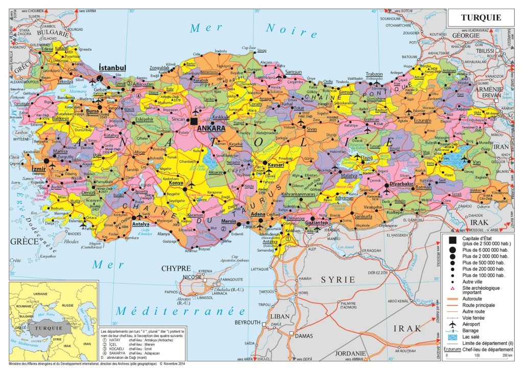 Carte de situation géographique en Turquie